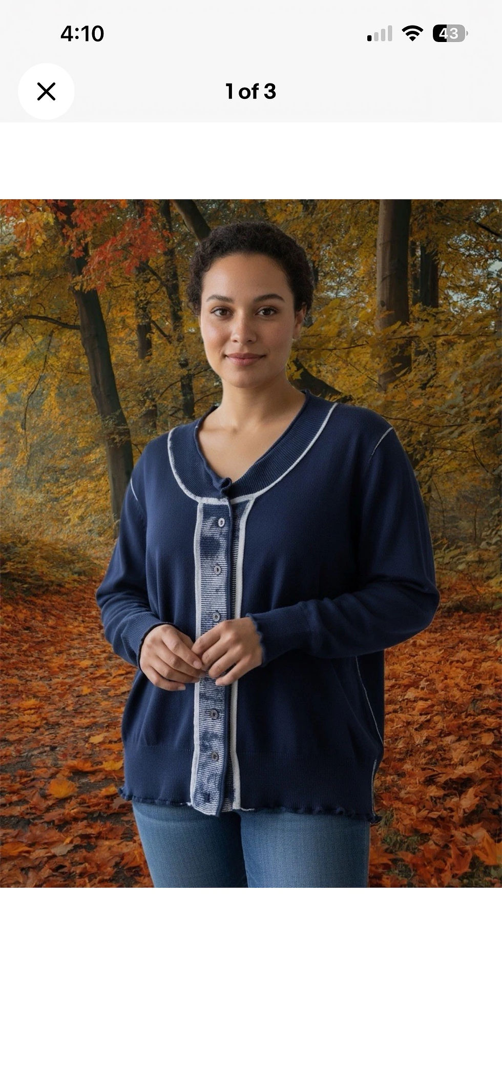 CAbi XL Women’s Blue Cardigan Button Sweater